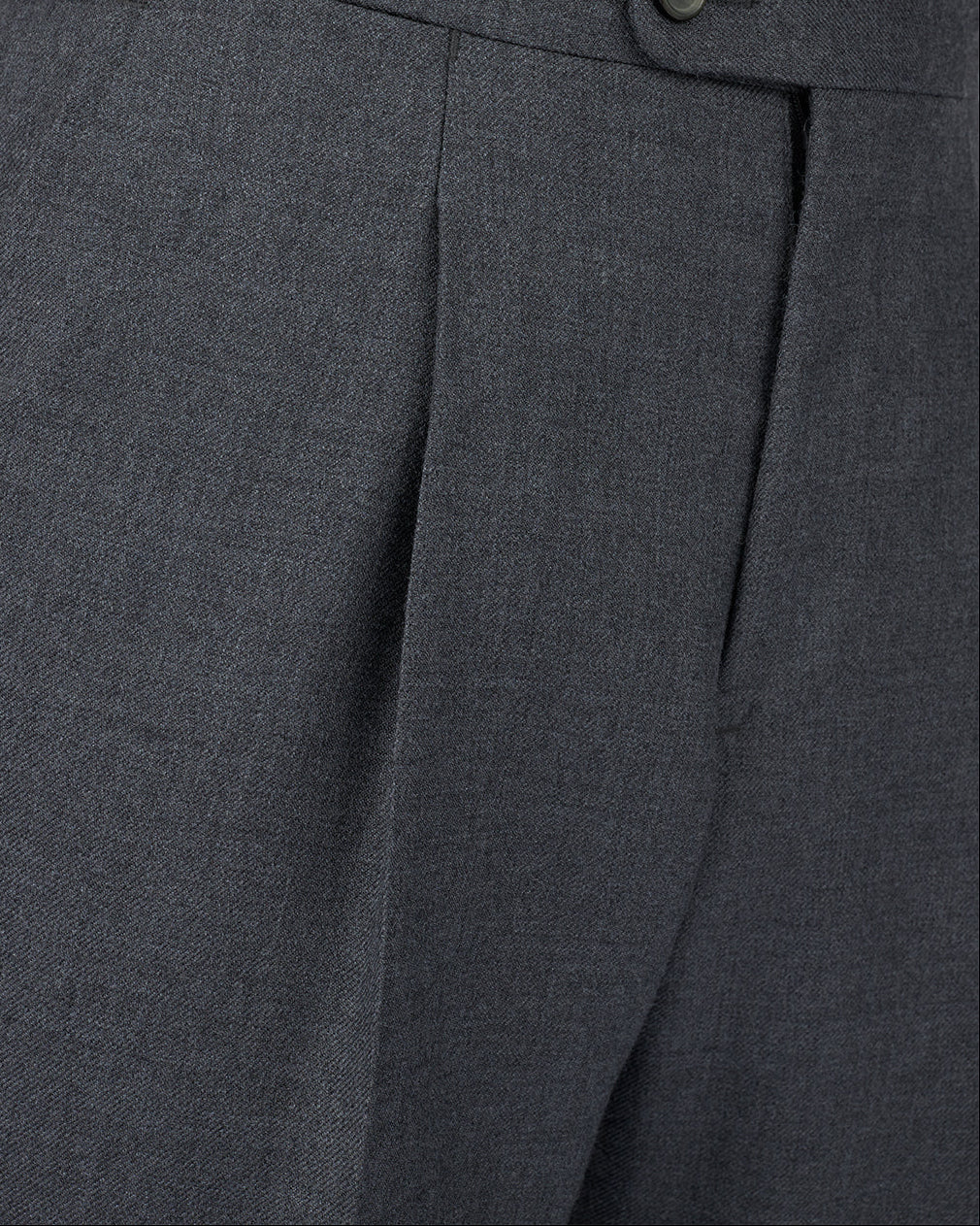 oUR TROUSER HAS A high rise, a SINGLE forward facing pleat and A FULL leg which subtly tapers, to create a neat and timeless silhouette.